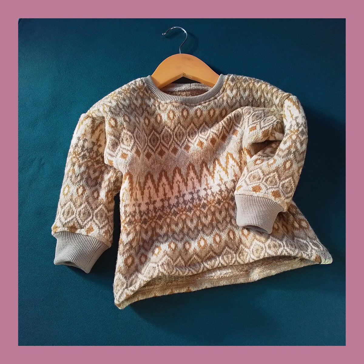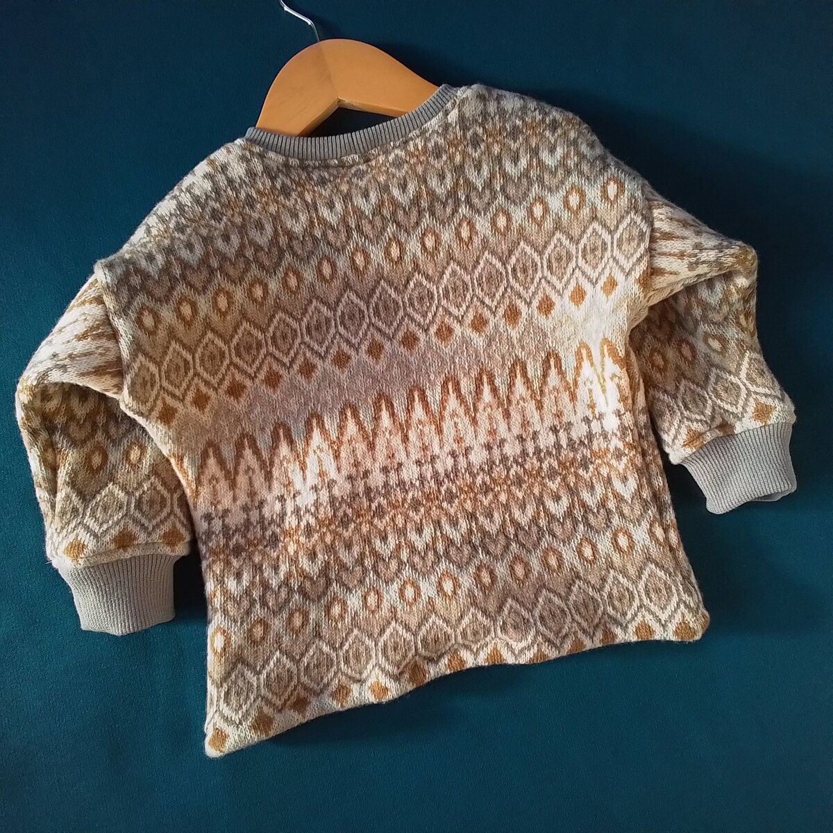 Baby-Pullover aus Merino-Wolle – Nordische Strickmuster in beige Größe 86/92